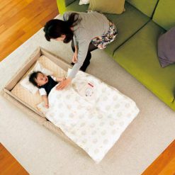 おねんねスペースを簡単に移動してお使いいただけるので、寝室やリビング、里帰りなど生活の様々なシーンで赤ちゃんの安心できる環境で寝かせてあげることができます。 赤ちゃんには安心を、ママには生活シーンでの負担の軽減を叶えてくれるアイテムです。