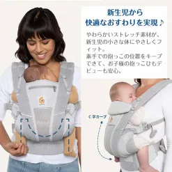 柔らかい肌ざわりと優れた通気性を持つS o f t F l e x メッシュを使用。 人間工学に基づいた設計で、肩腰の荷重をバランスよく分散。 肩なじみの良い肩ストラップで体にぴったりフィットします。 パパママ、赤ちゃんにフィットする抱っこひもです。 日よけ用フードや、おでかけに便利なポーチやサイドポケットなど嬉しい機能付き。