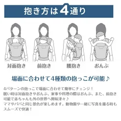 成長に合わせて4通りの抱っこができるオムニ。 新生児から4歳頃まで長くお使いいただけます。