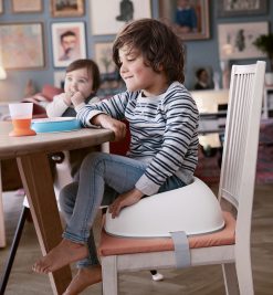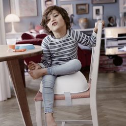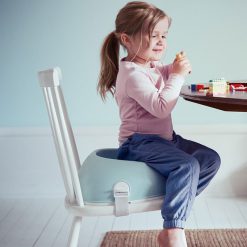 ブースターシートは、丈夫なベルトでしっかりと、そして簡単にダイニングチェアに固定できます。