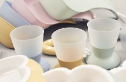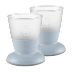 ベビービョルンのベビーカップは、小さなお子様が「キャップ」や「ストロー」なしのコップで飲む練習にぴったりのアイ テムです。テーブルでしっかりと安定し、倒れにくい台形型のデザインで、すべりどめのゴムもついています。生後8ヶ月 以上のお子様にお奨めします。色が異なる2つがセットになっています。