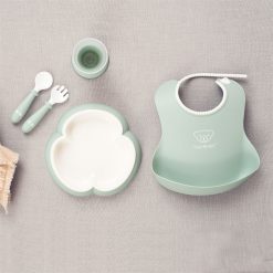 ベビービョルンのプレート・スプーン&フォークセットはかわいいだけだけではありません。 上手に楽しくお食事できるように設計されているスグレモノ。ベビーの「一人で食べたい」という自立心を優しくサポートします。