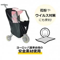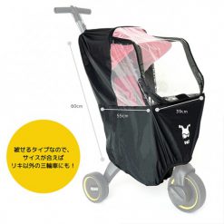 おでかけ先で突然天候が悪くなってしまった時、慌てなくても良いようにdoonaからレインカバーが登場しました。ジッパー付きの広い開口とフロントオープン構造で、雨の日の乗せおろしも楽に行えます。リキ以外の三輪車でも使用可能です。